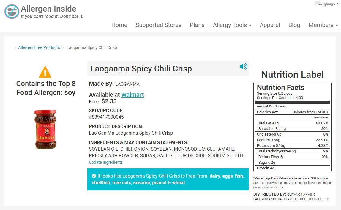 https://allergeninside.com/foods/ingredients/889417000045/Laoganma-Spicy-Chili-Crisp