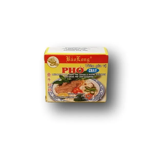 Products Condiments & Sauces Condiments Bao Long Vegetable Pho soup base 75 g Skip images Product Code: 21386 EAN: 8936082240244 In stock -0% 1,00 € Quantity Add to cart