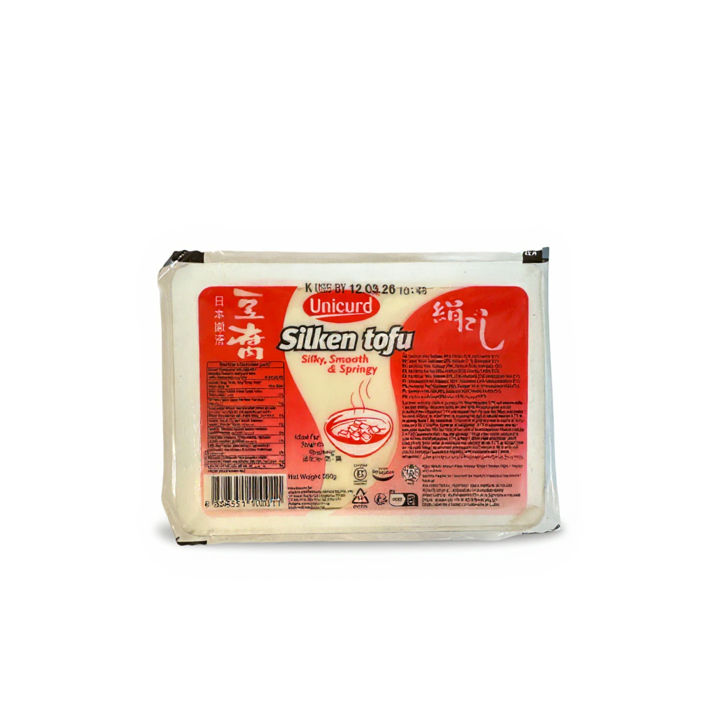 Products Fresh Meatless Japanese Silken Tofu T01 300g Skip images Product Code: 15.040.080 EAN: 8888351100011 unicurd Read more about the product In stock -0% 2,10 € Quantity Add to cart Description 300 g box, Singapore. Ingredients Water, soybean, stabilizer (E516), raising agent (E575). Contains soy.