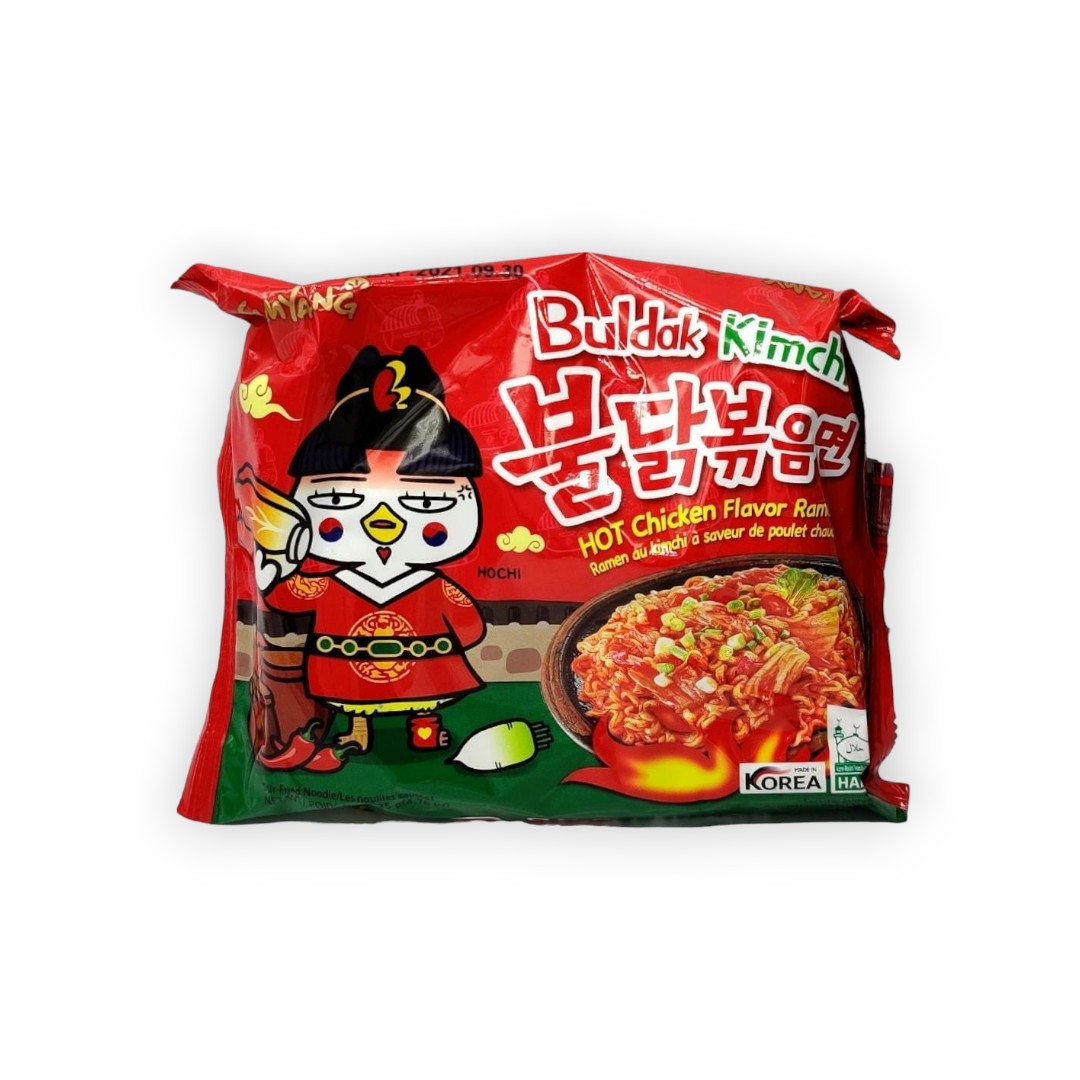 Soups (23.7%): water, white sugar, Kimchi powder, chicken chicken flavor, corn syrup, soybean oil, pepper paste, chili pepper effect, soy sauce, onion, artificial chicken flavor powder, flavor enhancer [monosodium L-glutamate (E621)] pepper powder, garlic, modified potato starch, paprika extract, colored chili extracts, color [caramel powder (E150c)], black pepper powder, acidity regulator [EL-malic acid (E296)]