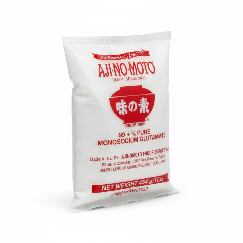 Products Spices & Dried ingredients Spices Monosodium Glutamate 454g Skip images Product Code: 27989 EAN: 3700417300027 Ajinomoto Read more about the product In stock -0% 3,40 € Quantity Add to cart Description 454 g Bag EU Ingredients Monosodium glutamate (E621).