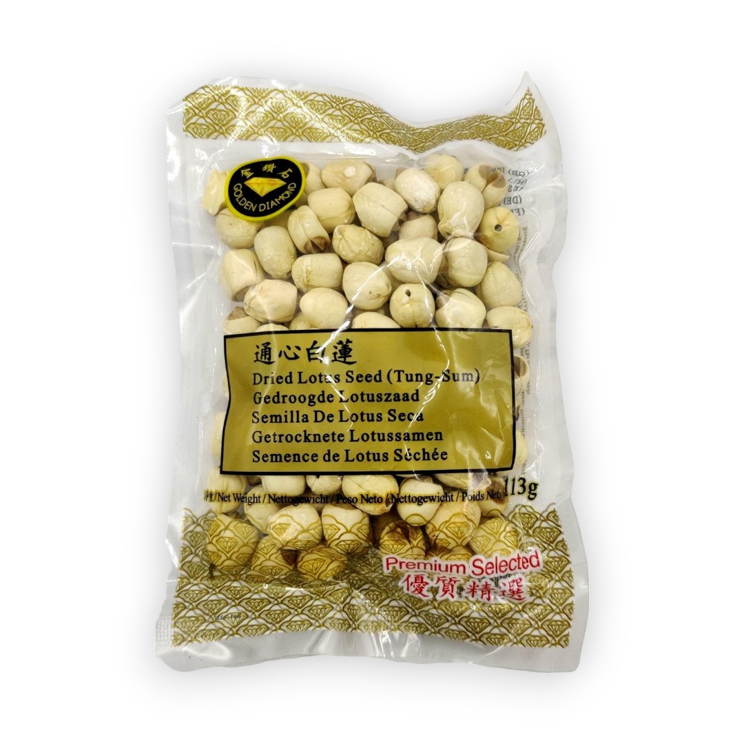Products Spices & Dried ingredients Dried Foods Dried Lotus Seed Skip images Product Code: 1327 EAN: 8718226631244 Golden Diamond Read more about the product In stock -0% 5,80 € Quantity Add to cart Description 113 g BBD 30.06.2024 Ingredients Dried Lotus Seed.