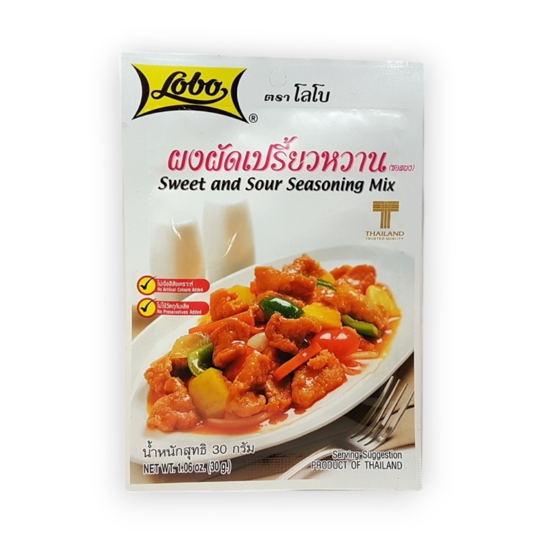 Sokeri, maissitärkkelys, etikkajauhe, tomaattijauhe, hydrolysoitu kasviproteiini (soijapapu, maissi, maltodekstriini), arominvahvenne (E621), happamuudensäätöaine (E330), mausteet (kaneli, chili, valkopippuri, mausteneilikka), suola, paakkuuntumisenestoaineet (E551, E341), aromi Sisältää soijaa ,Thaimaa