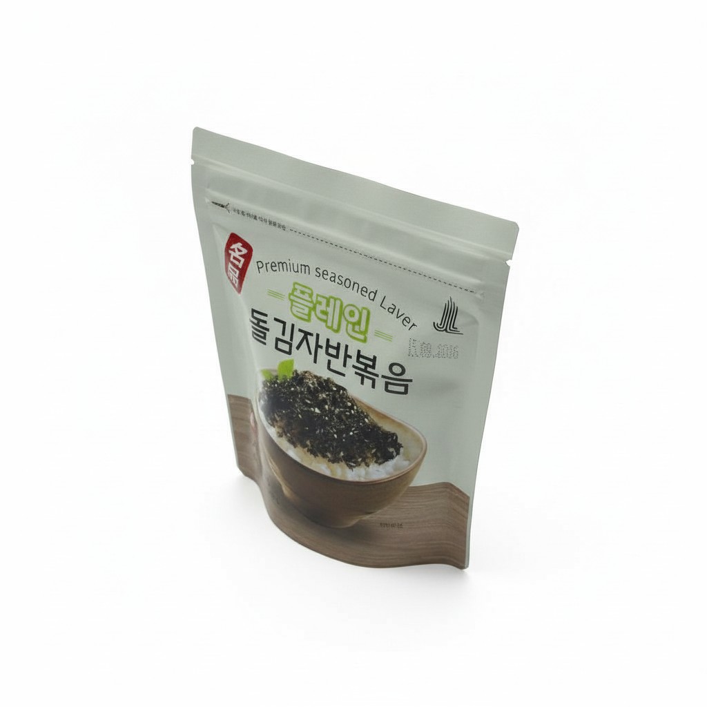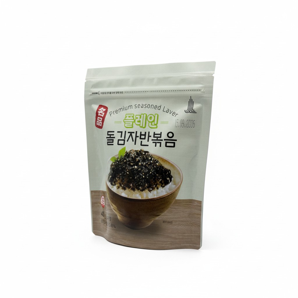 SOYBEAN oil, dried laver 22%, sugar, roasted SESAME, SESAME oil, salt, flavour enhancer (E621). Green laver, may contain traces of EGG, GLUTEN, MILK, PEANUT, CRUSTACEAN, FISH.