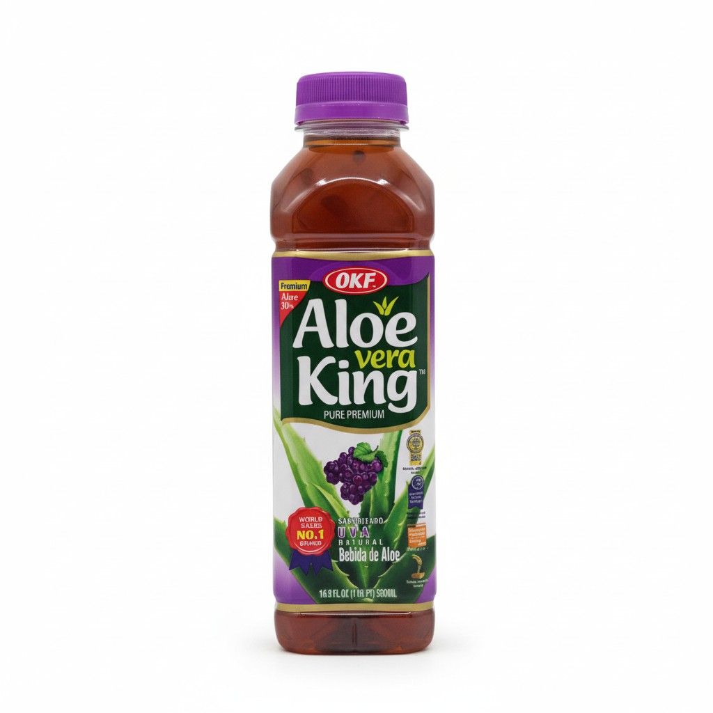 Vesi, aloe vera mehu, fruktoosi, aloe vera geeli, hapettumisenestoaineet (E330, E327), luonnollinen rypäleen maku, rypäleenkuori mehu, hapettumisenestoaine (E331), emulgointiaine (E418), sokeri.
