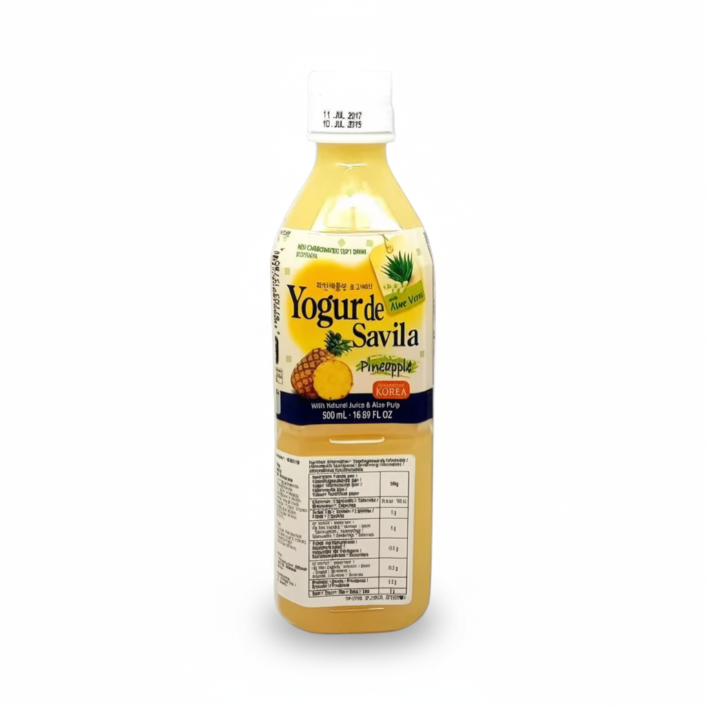 Vesi, rasvaton maito, sokeri, ananasuute, aloe vera hedelmäliha, soijakuitu, emulgointiaine (E440), hapettumisenestoaineet (E330, E331), keinotekoinen maku (jogurtti, ananas), värit (E102, E129) Sisältää maitoa ja soijaa,Korea