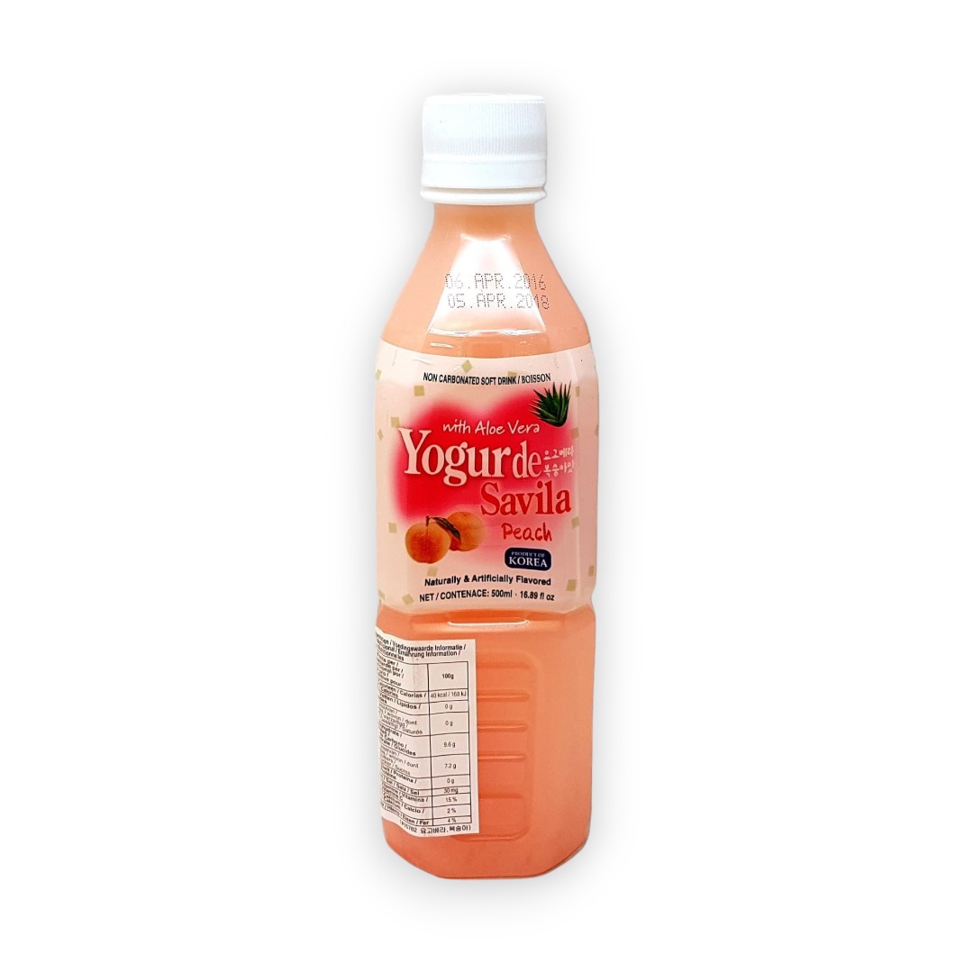 Vesi, rasvaton maito, sokeri, persikkauute, aloe vera-geeli, soijakuitu, emulgointiaine (E440), happamuudensäätöaineet (E330, E331), keinotekoinen aromi (jogurtti, persikka), väri (E102, E129)Sisältää maitoa ja soijaa ,Korea