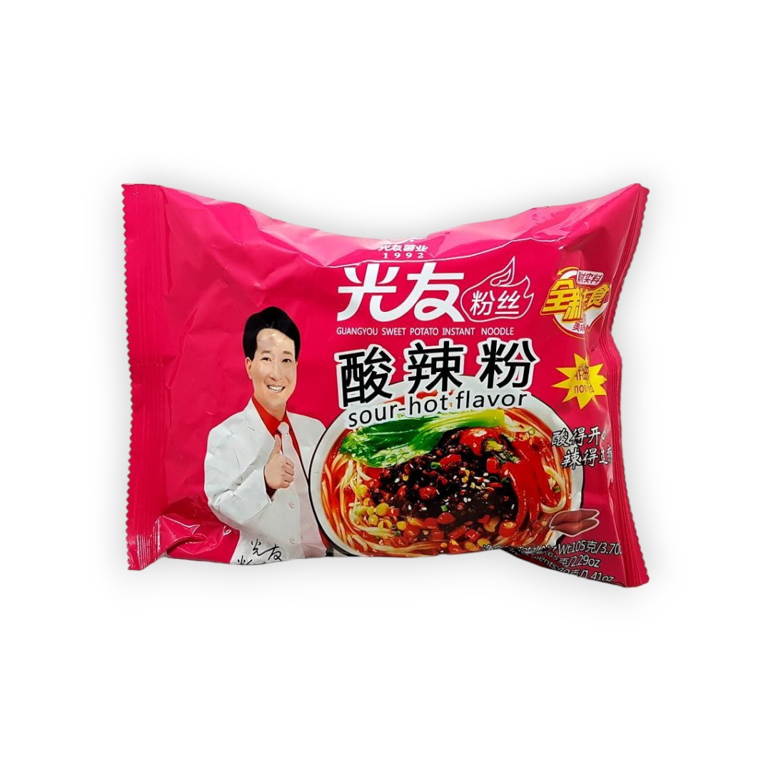 Nuudeli: bataattitärkkelys, kassavatärkkelys, maissitärkkelys, suola, muunneltu soijapapu, fosfolipidi, emulgointiaine (E446), hapettumisenestoaine (E330). Kastike: kasviöljy, chili, sichuan pippuri, seesami, aromi.