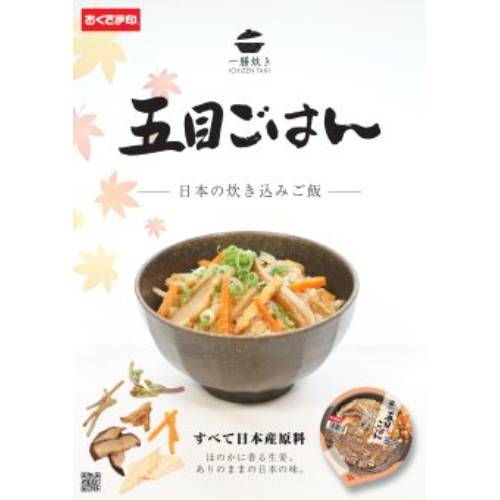 Kiillotettu riisi (japanilainen), sekoitettu dashi (bonito-hiutaleet, kuivatut shiitake-sienet, merilevä), porkkanat, bambunversot, takiaisenjuuri, paistettu tofu, soijakastike, rehydratoidut shiitake-sienet, sokeri, suola, inkiväärimehu, aromit, riisiviinietikka/tofun sakeuttamisaine (sisältää vehnää ja soijapapuja)