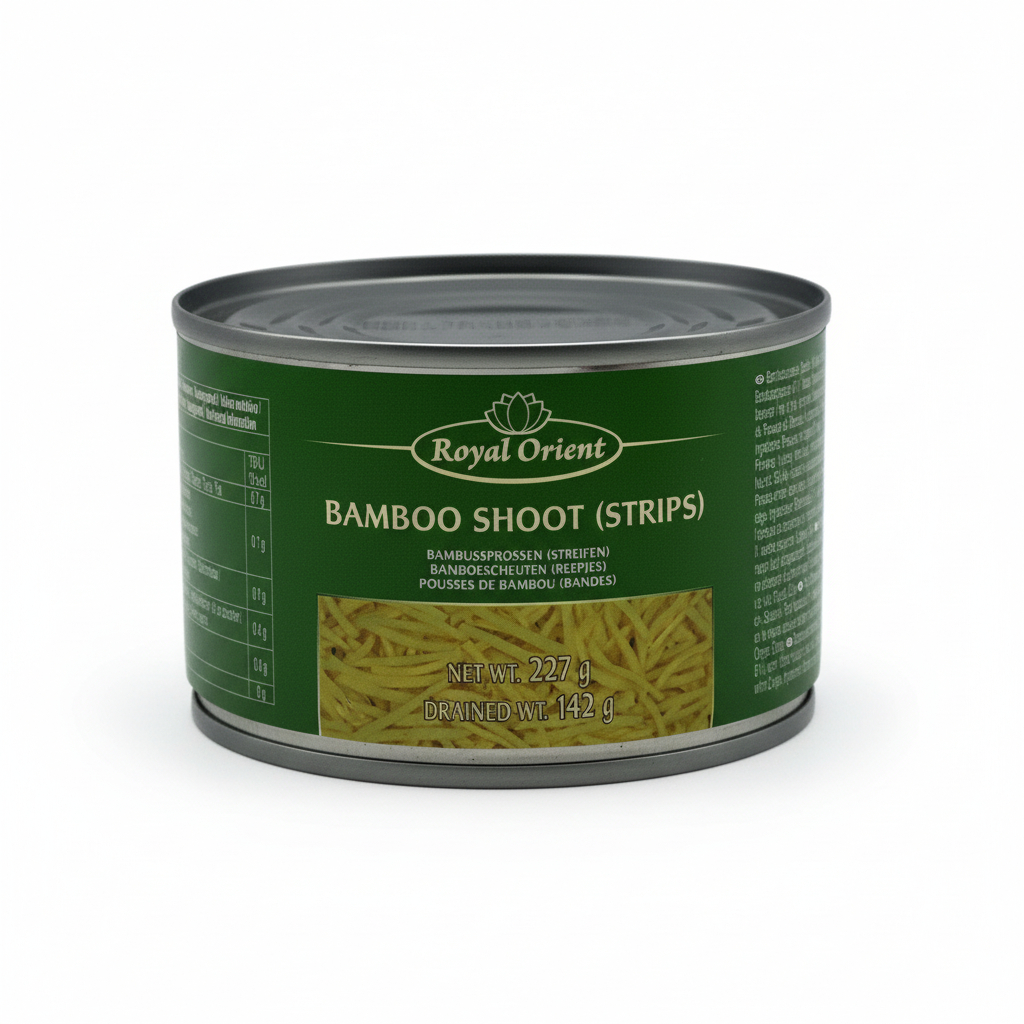 Tuotteet Säilykkeet Preserved Food ROYAL ORIENT Bamboo Shoot Strips 227g Ohita kuvat Tuotekoodi: 1050-1 EAN: 8719497398201 Royal Orient Lue lisää tuotteesta Varastossa -0% 1,10 € Määrä Lisää ostoskoriin Kuvaus 227 g Tölkki Kiina Ingredients bambunversoja, vesi.